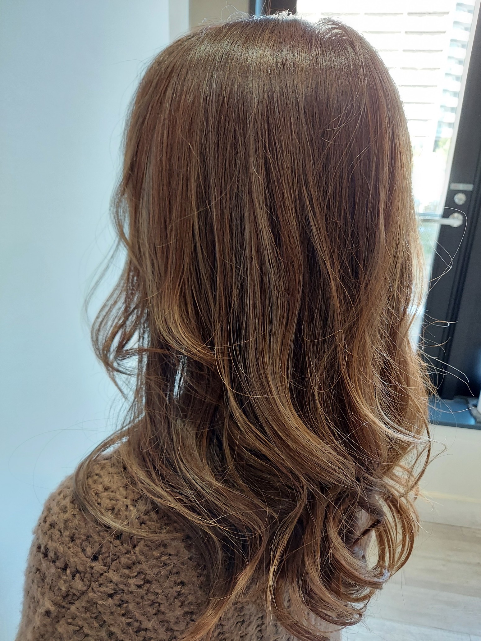 ハイライトをブリーチ剤でいれてからのアッシュでグラデーションになるようにオンカラーしました。